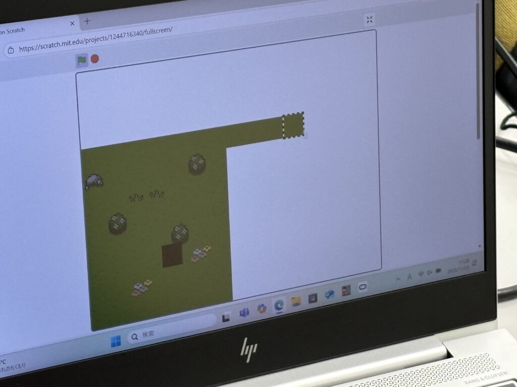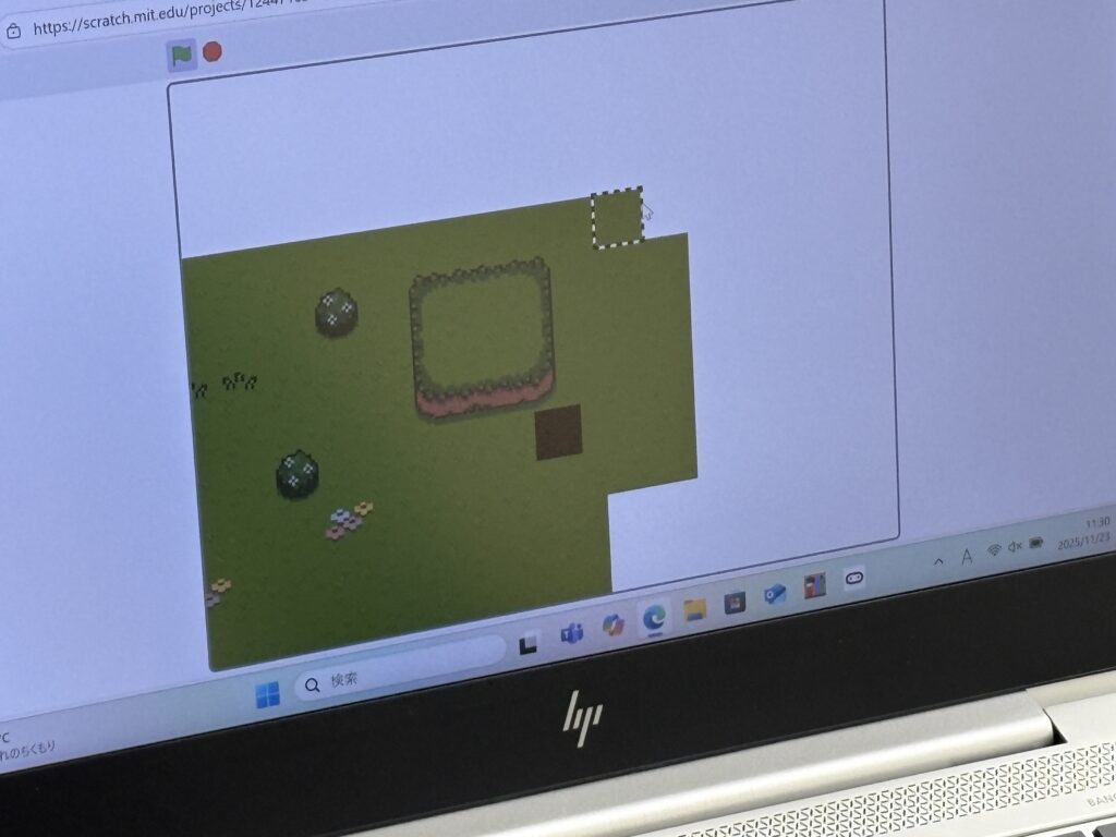 別のニンジャは、「RPGツ◯ール」のようなゲームを作っていました。Scratchのスタンプ機能を活用して、色んなフィールドを自由に作ることができる仕組みですね。