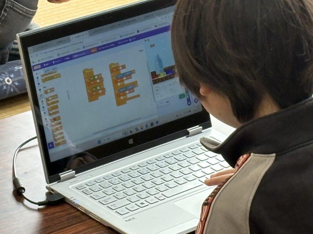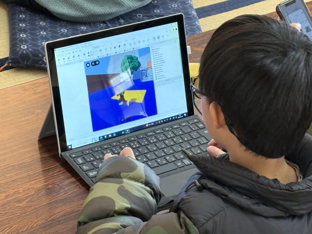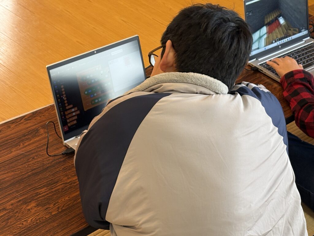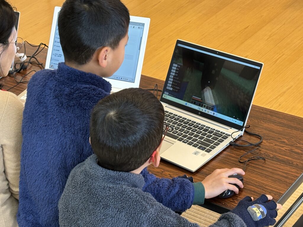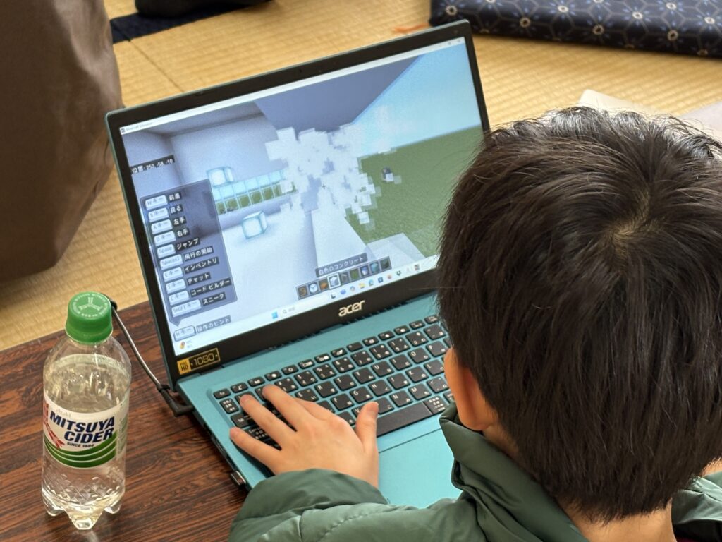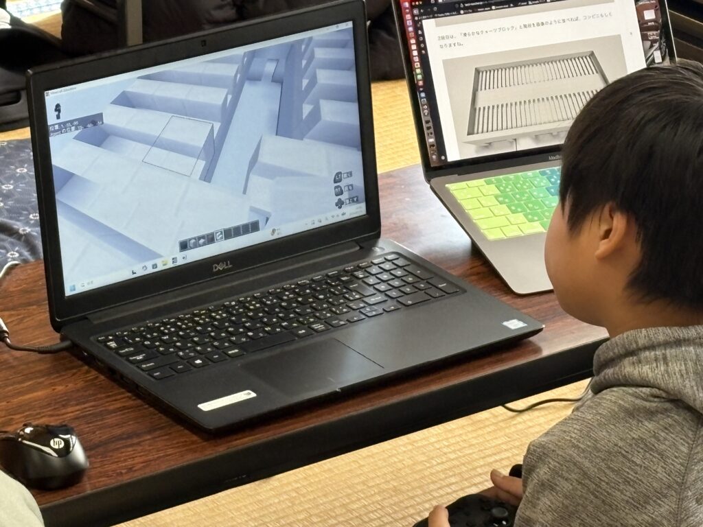 今回は和室での開催ということで、いつもとは違った寺子屋のような雰囲気の中、子どもたちがゆったりと作品づくりを楽しむ姿が印象的でした。Scratch、教育版マインクラフト、Robloxと様々なツールを使いながら、それぞれが自分のアイディアを形にしていく様子は、見ていてとても嬉しくなりますね。