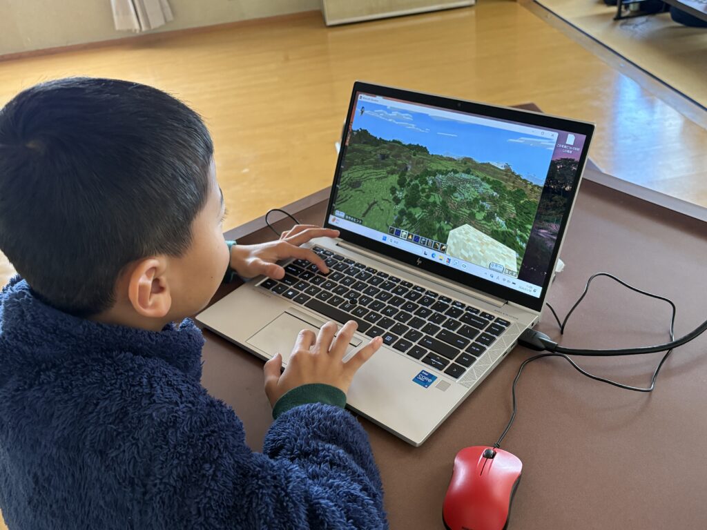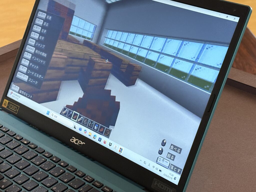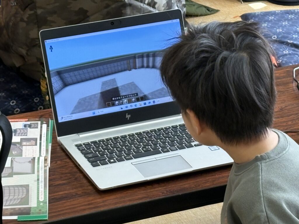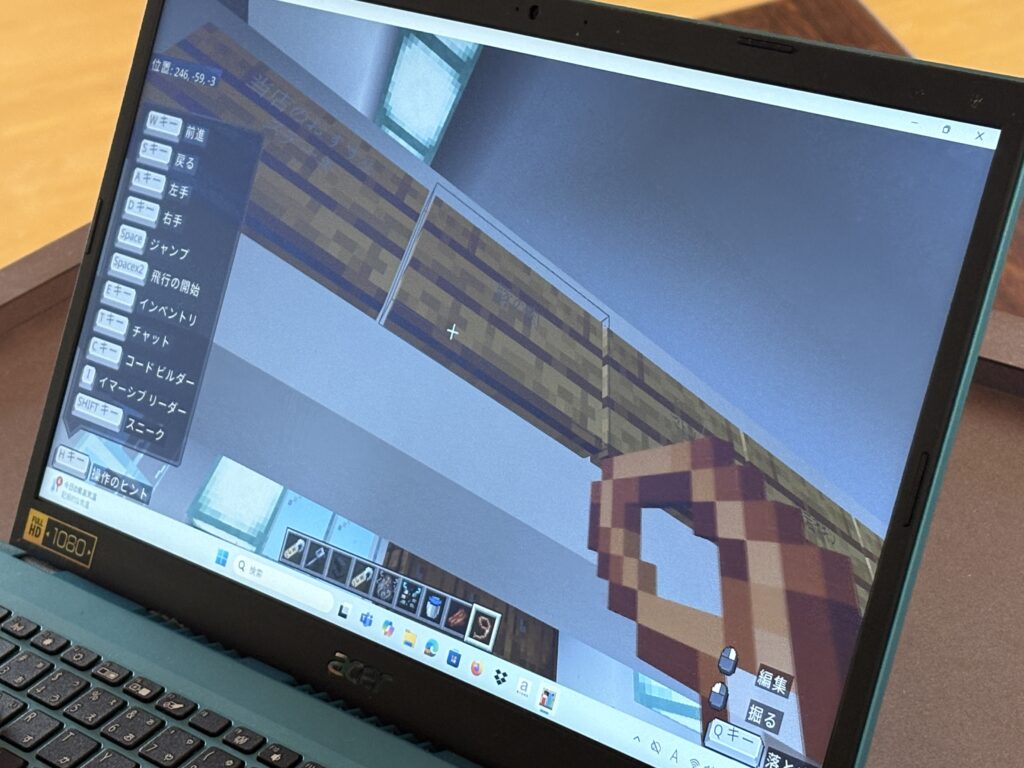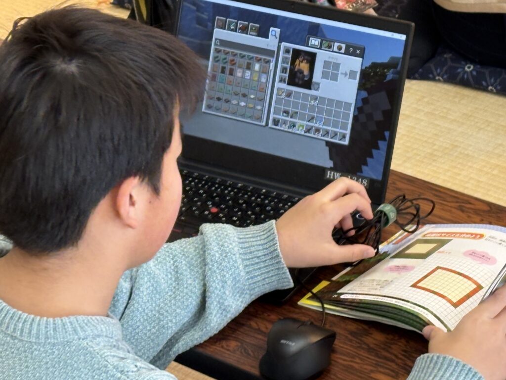パソコンで初めてマイクラをやったというニンジャもいました。最初は操作方法に慣れない様子でしたが、少しすると自在に操っていましたね。