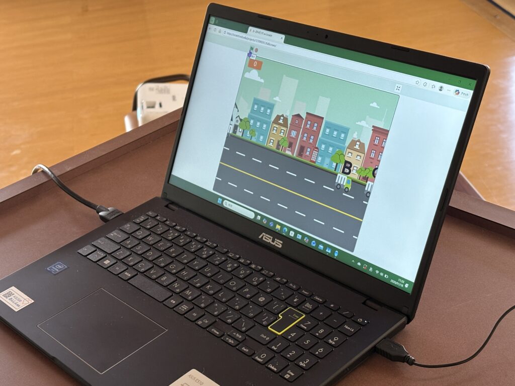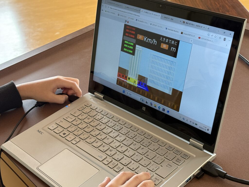 スタートさせて、ゴールとなる駅でピッタリと止まれるようにアクセルとブレーキを操作するというものです。発表のときには、みんなで駅までの残り距離をカウントしながら、きっちり電車を止めることができていましたね。