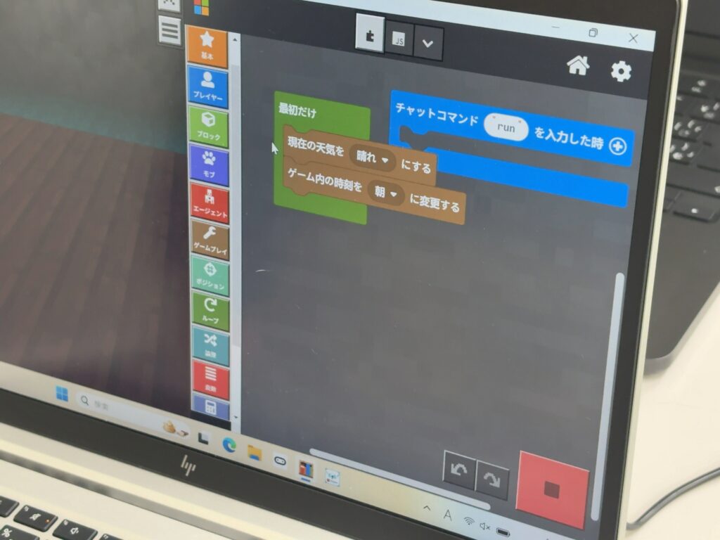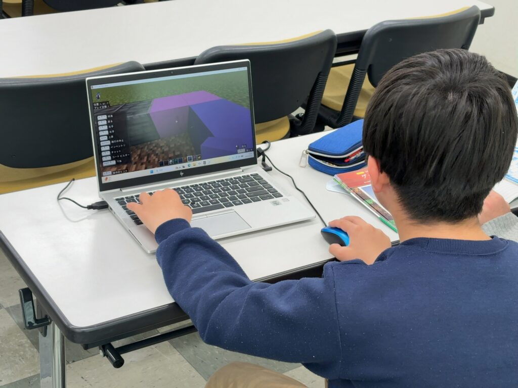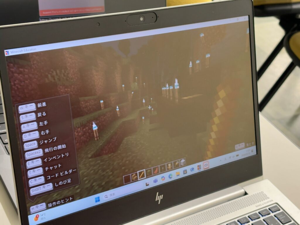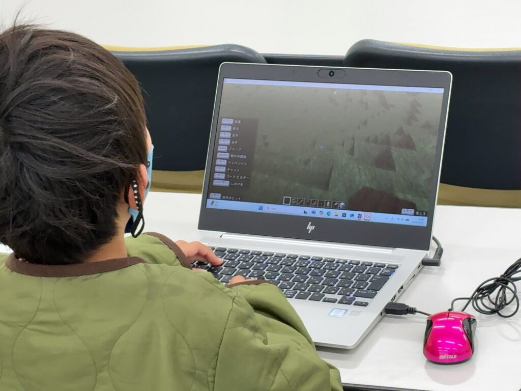 もう1人のニンジャは、パソコンでのマインクラフトは初めてということで、操作方法の説明からスタート。とはいえ、普段から動画などで見ているだけあって、ほぼ感覚で操作できていましたね。子どもの吸収力は本当にすごいです。