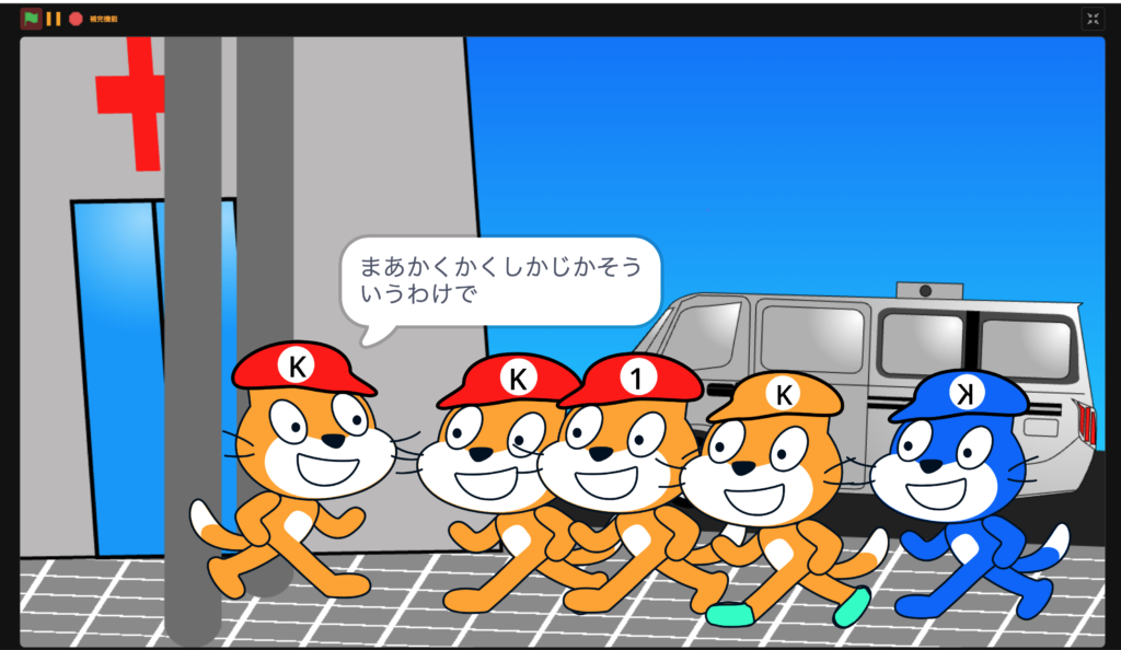 ゲーセンは作成時間の半分くらいから始めたので、土台ができるくらいかなと思っていたのですが、発表タイムのときには建物がしっかりと出来上がっていて、建築スピードにはビックリしました!